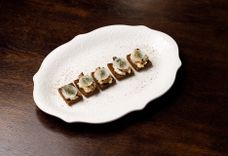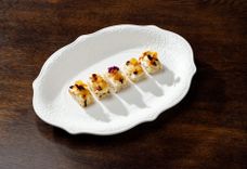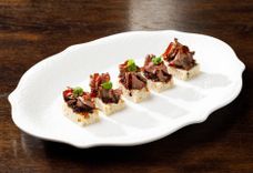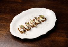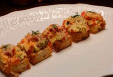 Закуска с мясом камчатского краба и муссом из красной икры на белой чиабатте